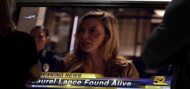 We kind of want to see a mega mix of “Laurel Lance Found Alive” with the whole “Oliver Queen Is Alive” stuff from Season 1. In any event, here’s the clip… official photos and a description for the episode which is called “Doppelganger” can be found below.