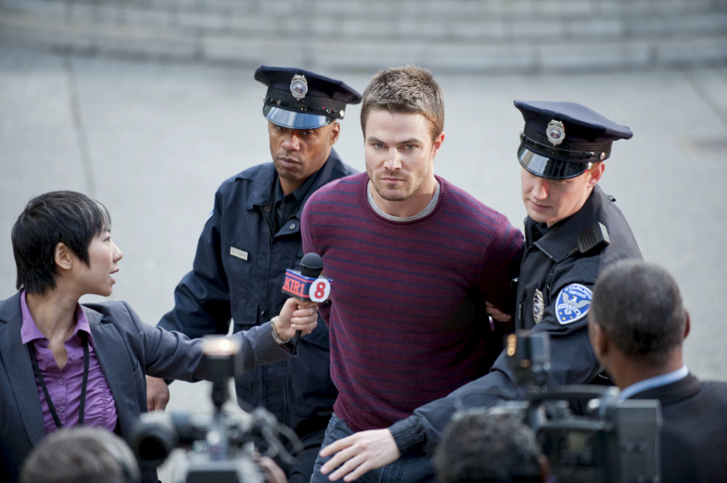 Detective Lance works to pin Arrow’s crimes on Oliver, while Oliver gets Laurel to be his defense attorney. However, it turns out to all be part of Oliver’s plan; he knew people would get suspicious of his identity eventually. He got himself arrested so he could have an alibi while Diggle poses as Arrow to clear Oliver of suspicion. In the island flashbacks, Oliver is captured by Edward Fyers and tortured by Deathstroke, who question him about Yao Fei, the hooded man who has been helping him. Meanwhile, Walter investigates the Queen’s Gambit ship and confronts Moira about it, only to hit a dead end, prompting him to leave to get away from the secrecy.