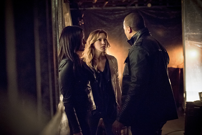 Arrow -- "Al Sah-Him" -- Image AR321A_0024b-- Pictured (L-R): Katrina Law as Nyssa Al Ghul, Katie Cassidy as Laurel Lance and David Ramsey as John Diggle -- Photo: Dean Buscher/The CW -- © 2015 The CW Network, LLC. All Rights Reserved.