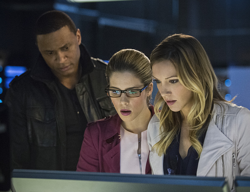 Arrow -- "Al Sah-Him" -- Image AR321B_0222b-- Pictured (L-R): David Ramsey as John Diggle, Emily Bett Rickards as Felicity Smoak and Katie Cassidy as Laurel Lance -- Photo: Cate Cameron/The CW -- © 2015 The CW Network, LLC. All Rights Reserved.