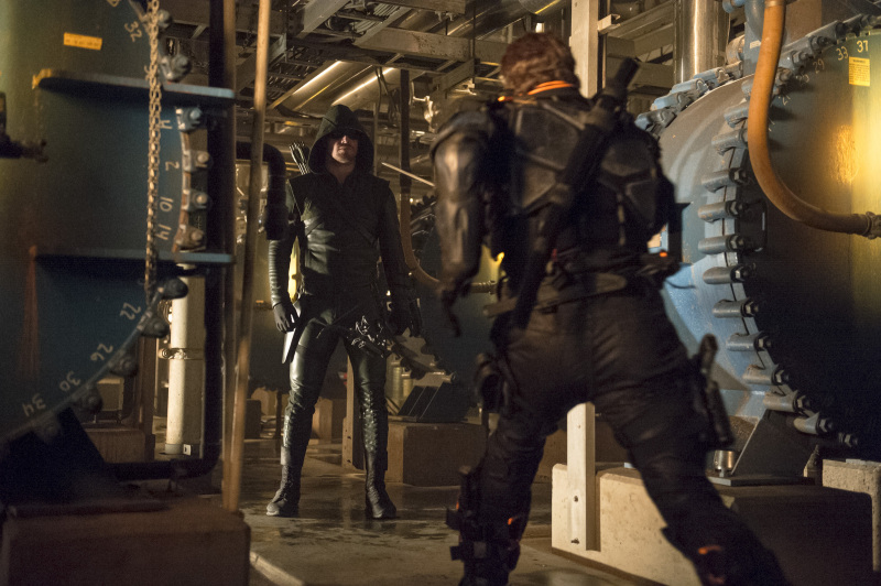 The most striking sequence of the hour was the single most defining of this first two years: the showdowns between Oliver and Slade in both the past and the present. The conception of writers Berlanti, Guggenheim, and Kreisberg, the execution of director Behring, and the crafting of editor Andi Armaganian was a dazzling volley between both time periods, an intercut meant to evoke bookends to this specific thread of Oliver’s life. In both, he was presented with the choice of saving or ending Slade, a choice that was as much about Oliver’s own life and soul as it was his friend’s. What’s most compelling about this in the past timeline is that Oliver makes the choice here. Since Oliver revealed to Team Arrow that he chose to kill Slade in the past rather than cure him, the thought was that he would head into a final showdown with his friend and mentor in the past with the pure intention of taking him out. What we saw play out here and in “Streets of Fire” last week was far from that case. Up to the very end, Oliver was resolutely focused on saving Slade from his altered state, his anger, himself. It’s the kind of emotional truth and depth of the series that often gets overlooked in favor of the superhero trappings, the romantic entanglements, and the network affiliation.