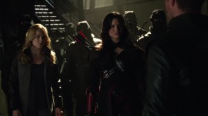 As a site, we’ve been accused of having some kind of Laurel bias, which one can’t help but find humorous. If you look back to our reviews and coverage of Laurel over the last two years, in particular our roundtable series (postseason) from last year, you’ll find that the majority of us felt that Laurel was the least likable and least developed of the characters. We were sadden because actress Katie Cassidy had proven spritely and game in past roles, giving a strong expectation of how well the character would be handled. Plus, of course, she is the second credited lead on the series after star Stephen Amell. This made our disappointment with Laurel all the more pointed last season, yet there was hope that somehow they would be able to correct course with her this season. It started fair enough, pitting Laurel against the Arrow, but they managed to burn through that story in a few episodes and suddenly she was cast adrift yet again. The chemical dependency storyline at midseason was hit-or-miss, which seems to have caused many to write Laurel off. That’s unfortunate because in learning the truth of Oliver’s double life they were able to give Laurel some direction and some heft as a character. She’s all but relegated to the sidelines during this finale, but that’s mostly in service to closing Sara’s chapter to allow the next phase of Laurel’s life to begin. I, for one, feel there’s a good foundation that was laid in the last third of the season to start building Laurel’s life as Black Canary.