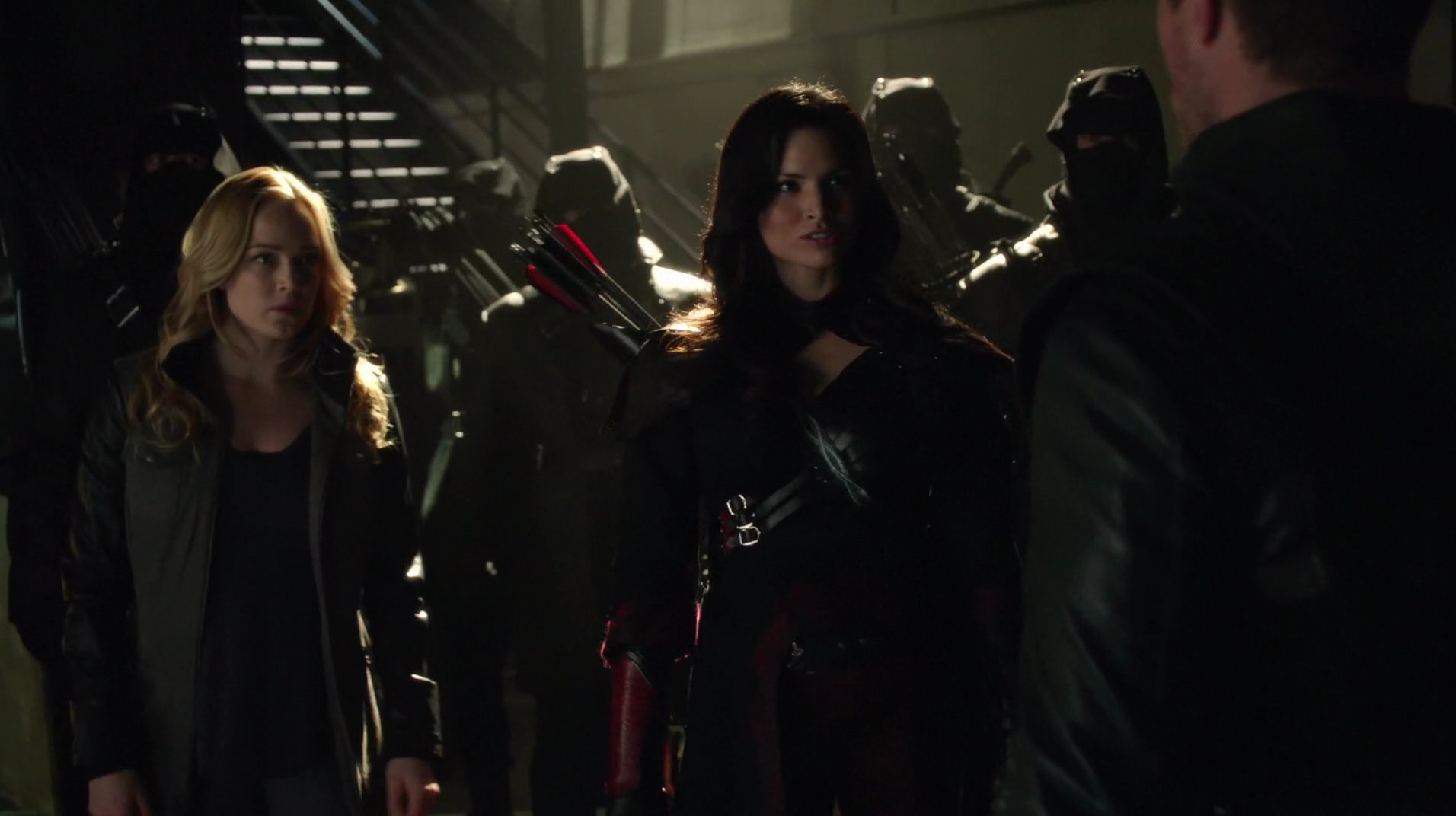 Speaking of backlash, inexplicably, one of the more divisive aspects of the series is the Lance family, which by my book is as important to the Oliver Queen mythos as his hood and bow. The family gets prominent space in the finale, even if each member gets slightly short shrift. One of those aforementioned minor surprises is that Sara got to live. Roundly expected to give her life to the cause, it was more than a pleasant surprise to see her survive the night, even if her choice to rejoin the League of Assassins is a bit hard to stomach. It’s apparent that she believes she can solve her problems by heading right back to the root and sort them out there. If there’s one way to write her off of the series, for the time being at least, this one is both smart and welcome. Sara and her portrayer Caity Lotz each soundly earned their place in the series over the season, which is a complete shift from the rather unwelcome introduction of her in the season’s first month. Sending her out in a body bag, though they’d built up a redemption story for her, would’ve seemed a bit distasteful and gratuitous. Even better is that she’s birthed a tradition of the Canary as a hero in Starling City, and it’s quite clear that handing her leather jacket over to her older sister was a pretty blunt passing of the torch. Sara is sure to be back in some capacity in the series, and the potential to see her next iteration of assassin or perhaps something attempting to be more transformative for the League is alluring. Much of that is built around her relationship with Nyssa, which, despite being spoiled in promos and press materials, is put to good use this outing. Whether or not they are or will be romantically linked, there is a strong tie between the two, and Sara was able to leverage that to help Oliver. That not only gave the Arrow an army — and one well versed in archery to carry out the inoculation plans — but gave the audience a fun bit of business over the contrasting styles of Team Arrow and the League.