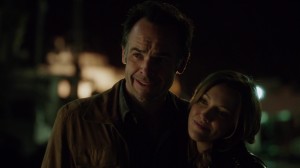 That present choice, of course, was set up by Oliver and Felicity in one of the most devious ploys of the series, both in-story and against the viewing audience. The undeniable chemistry between actors Amell and Rickards has built its own cottage industry amongst the fandom of the show, and the showrunners are keenly aware of it. Whether you subscribe to #Olicity or not — again, though there is great chemistry there, I can’t help but feel a more chaste, respectful love of caring rather than anything long-term romantic — the show hasn’t been afraid to both offer and play on moments of that facet throughout the season. This, though, has to have been the most egregious, and it’s a rather controversial choice on the writers’ parts. It runs a razor’s edge of alienating that very vocal subset of the fandom, while also giving them a strong taste of that for which they’ve been roaring. When exec producer Marc Guggenheim shared a single line of dialogue from the finale on Twitter, “I love you,” it got a number of people frothing, finally expecting to hear Oliver say those three magic words to his girl Friday. The assumption seemed to make sense, but I have to admit that it seemed like such an obvious bit of fan service that I was somewhat dreading hearing the line in the episode, in addition to thinking that they likely wouldn’t be so obvious. Yet, once the scene at the mansion played out, one couldn’t help but buy into it, and my jaw actually dropped a bit.