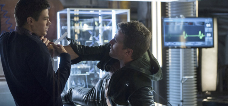 Barry Allen manages to save Oliver from death injecting rat poison into his bloodstream to counteract a massive clotting problem. Oliver is none too happy that Felicity revealed his secret to Barry without his authority. Barry says he can help identify the super-strengthened attacker the Arrow fought. Oliver finds that Thea & Sin are harboring the injured Roy at the mansion, helps out with his wound, and suggests that the three leaving the Arrow well enough alone. Thea and Sin enlist Laurel to search into the blood drive sponsored by Sebastian Blood. She finds nothing wrong with the drive but that each person was given a psych evaluation to donate. Roy goes to the office of psych firm and gets captured by Cyrus Gold. Meanwhile, Oliver experiences hallucinations, talking with Shado and fighting with Slade Wilson, each trying to turn him away from being the hero. Barry is able to identify Oliver’s attacker as Gold and tests Oliver’s blood to see if the rat poison is giving him the hallucinations. After a confrontation between Gold and Diggle, the affected Arrow asks Officer Lance to go after Gold and kill him. Gold takes out all of Lance’s team, including his former parter, and sends Lance to the hospital. Barry reveals that Oliver’s blood is fine and that his hallucinations are psychological. Oliver suits up and goes after Gold, discovering the lab, the captured Roy, and Blood in his mask. Struggling with Gold, Oliver talks to a vision of Tommy Merlyn who tells him to get over his guilt and be the hero they know he is. Oliver is able to defeat and kill Gold but Blood gets away. Roy has been injected with the Mirakuru super soldier serum and is near death but survives. Barry Allen returns to his lab in Central City. An accident with the particle accelerator at S.T.A.R. Labs sends mysterious energy into the stormy sky. As Barry attempts to close an open skylight, he is struck by lightning powered by the energy and thrown into the various chemicals of the lab. Blood makes his announcement of running for mayor of the city and meets with his benefactor, who is revealed to be Slade Wilson. On the island, Ivo pushes Oliver to make a choice between Sara or Shado being shot. When he won’t, Ivo moves to shoot Sara and Oliver steps in the way. Ivo turns the gun on Shado and kills her. In the Japanese sub, Slade comes back from death, now powered by the Mirakuru. Fearful for Shado, he runs after the group and attacks and kills Ivo’s men. He’s heartbroken when he finds Shado’s body, and Sara tells him they don’t know why Ivo shot her to protect Oliver from Slade’s wrath.