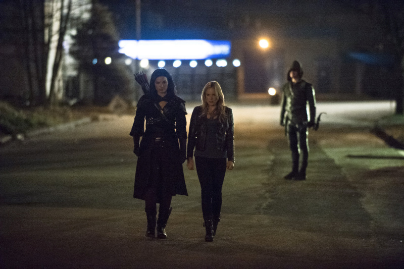 Arrow -- "Heir to the Demon" -- Image AR213a_0494b -- Pictured (L-R): Katrina Law as Nyssa al Ghul, Caity Lotz as Canary, and Stephen Amell as The Arrow -- Photo: Cate Cameron/The CW -- © 2014 The CW Network, LLC. All Rights Reserved