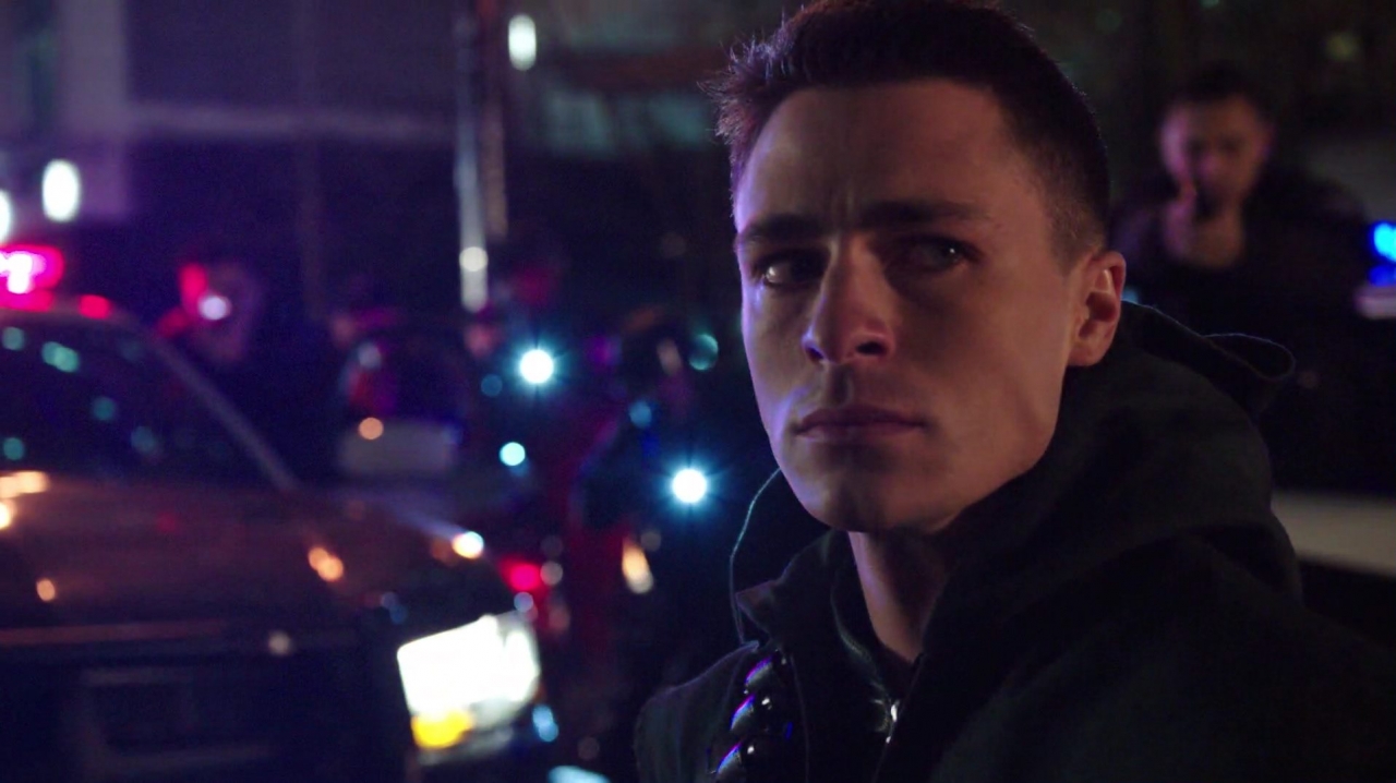 Roy and Diggle try to figure out their next move at the foundry, unclear of what to do. Roy knows they need to do something. Oliver is being transported to prison by Lance. The captain rails on Oliver for the choices he’s made that have cost the lives of a number of people, including Sara. He declares that Oliver isn’t a hero but a villain. Just then, the convoy is attacked. Lance jumps out of the armored transport to find the Arrow confronting the cops. The Hood announces that Oliver Queen isn’t the Arrow and gives himself up. He pulls his hood off to reveal that it’s Roy. Oliver is stunned.