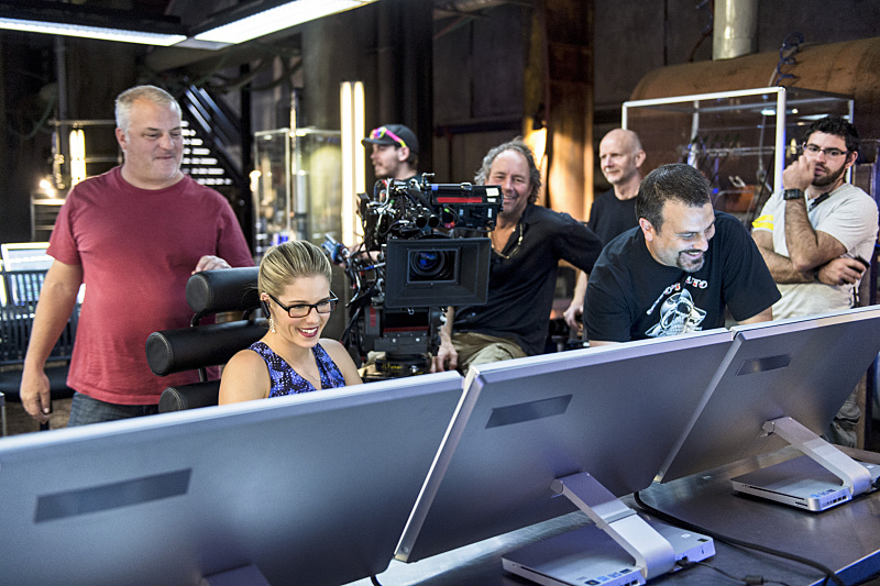Arrow -- "Guilty" -- Image AR306a_BTS_0358b -- Pictured: Behind the scenes with Emily Bett Rickards as Felicity Smoak -- Photo: Ed Araquel/The CW -- © 2014 The CW Network, LLC. All Rights Reserved.