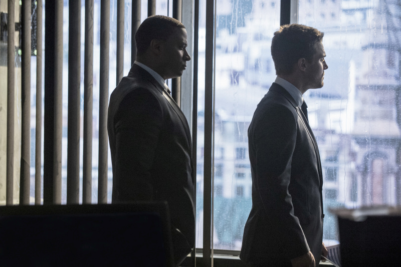 Arrow -- "The Scientist" -- Image AR208a_0550b -- Pictured (L-R): David Ramsey as John Diggle and Stephen Amell as Oliver Queen -- Photo: Cate Cameron/The CW -- © 2013 The CW Network. All Rights Reserved
