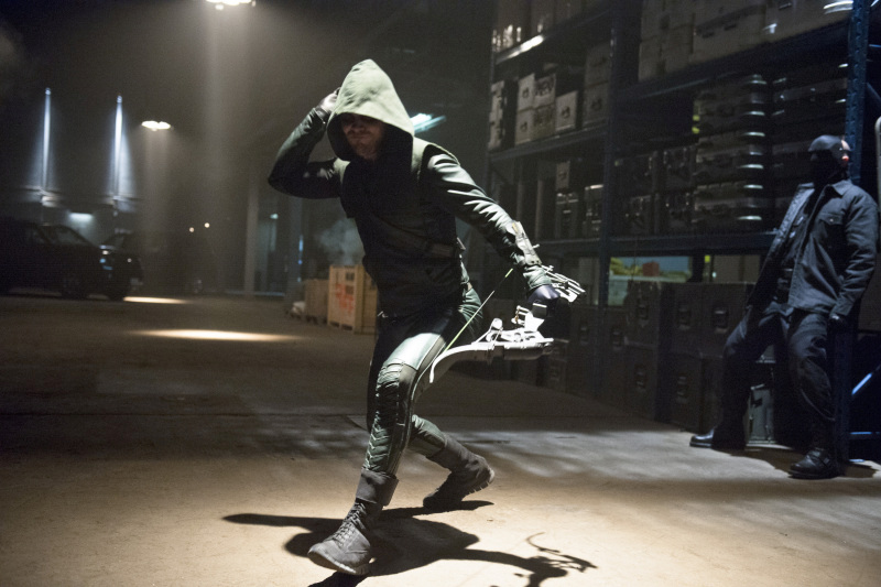 Arrow -- "The Scientist" -- Image AR208c_0139b -- Pictured (L-R): Stephen Amell as The Arrow and Graham Shields as The Acolyte -- Photo: Cate Cameron/The CW -- © 2013 The CW Network. All Rights Reserved