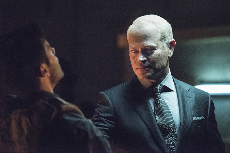 The true monster would seem to be Damien Darhk, but unlike most monsters, he’s not hiding in the shadows, in the closets, under the beds. He strolls right into the meeting of the city’s acting heads and straight into our hearts. Okay, perhaps that’s a bit much, but one of the smartest choices to make on the season is to reveal the big bad right up front. He throws down the gauntlet and welcomes the challenge. As much as I liked Matt Nable’s Ra’s al Ghul last year, they really struggled with how to use him effectively until late into the season. One of the big course corrections was to address that problem right out of the gate. And in casting Neal McDonough for the part, they’ve nailed it.