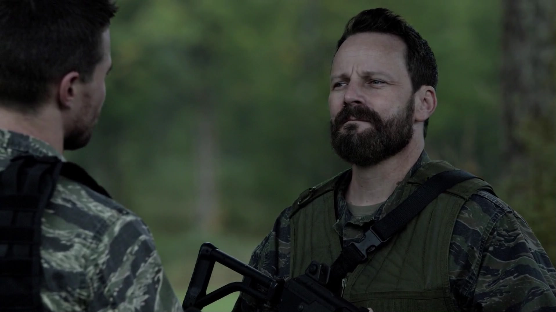With a lot less time to work with in the past than in the present, they’ve needed to establish the woman’s initial distrust of Oliver, followed by his convincing her that he’s there to help. They’ve also needed to boldly define the threat of Conklin. Guest actor Ryan Robbins — who coincidentally played a man on an island torturing a castaway Lex Luthor on Smallville — gives him the appropriate menace as well as his lack of care for the workers as human beings. Beyond that, though, they really work to play up the idea that Oliver has made the switched to broken, hardened killer. Conklin can see it in his eyes, and earlier Oliver didn’t hesitate to demonstrate his ability to torture as a means to prevent the soldiers from killing one of the workers.