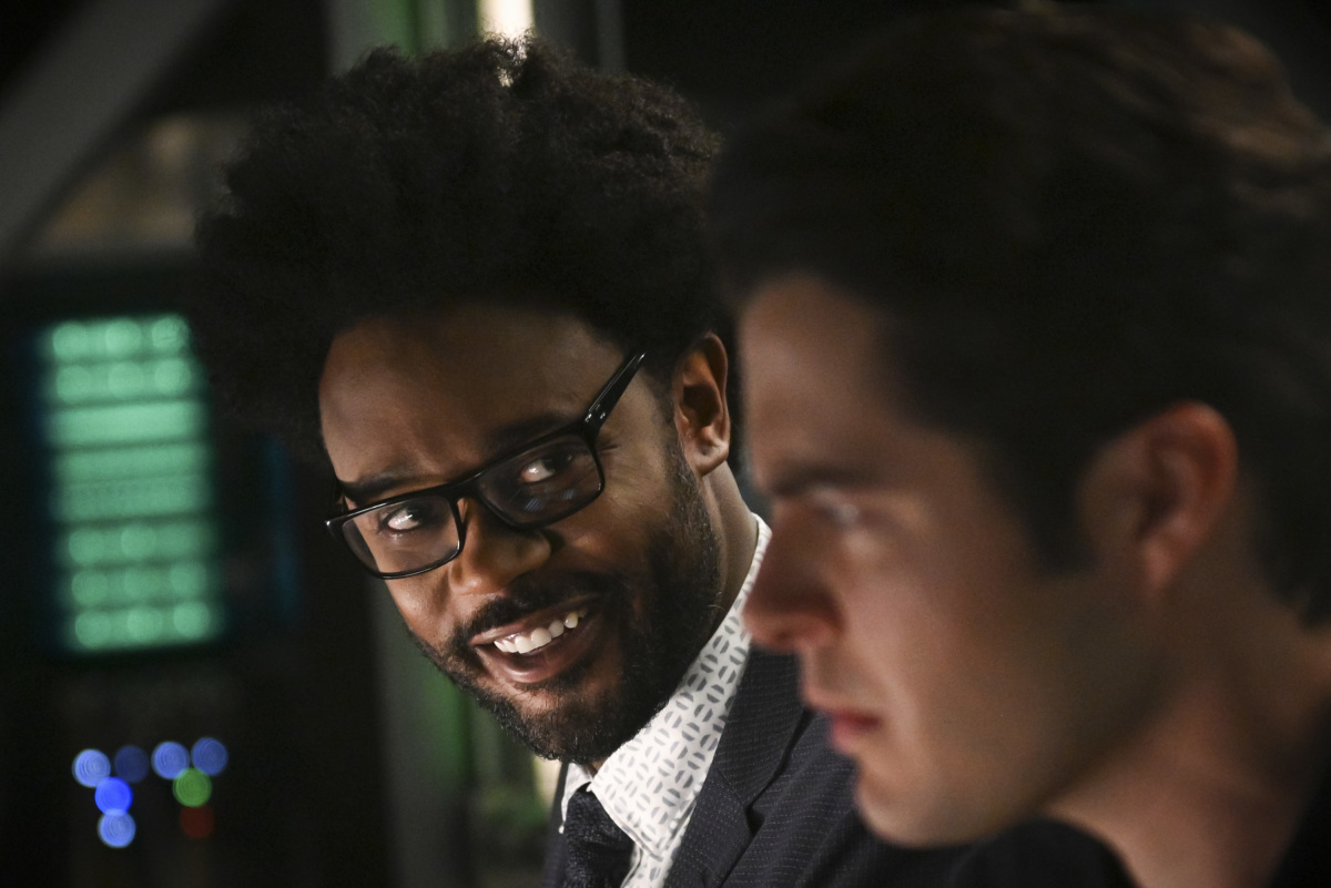 Arrow -- "Present Tense" -- Image Number: AR804b_0103b.jpg -- Pictured (L-R): Echo Kellum as Curtis Holt/Mr. Terrific and Ben Lewis as William Clayton -- Photo: Sergei Bachlakov/The CW -- © 2019 The CW Network, LLC. All Rights Reserved.