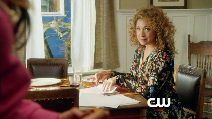 Mr. Video has provided us with screen captures from a preview clip for the February 5 episode of Arrow, which is called “Heir To The Demon.” The clip itself isn’t online yet – we’ll post it as soon as it is – but from the look of these still frames, it looks like a real treat of a scene, featuring pre-island versions of Laurel (Katie Cassidy), Sara (Caity Lotz), Quentin (Paul Blackthorne), and River Song – I mean, Dinah (guest star Alex Kingston).