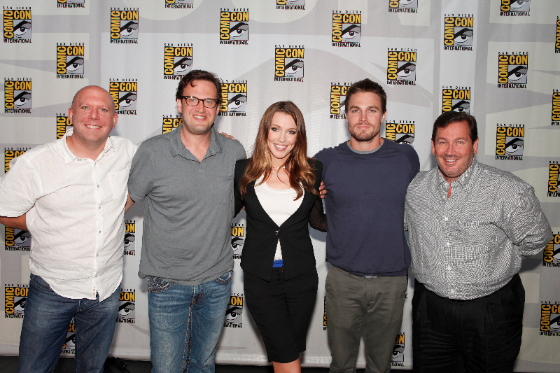 As you may have heard from reading GreenArrowTV in recent days, Arrow made quite an impression at this year’s Comic-Con International in San Diego. For those of you who weren’t able to make it, the fantastic folks from Warner Bros. have provided video from the Arrow panel (moderated by TV Guide’s Damian Holbrook) as well as imagery from both the panel and the autograph signing at the Warner Bros. booth.