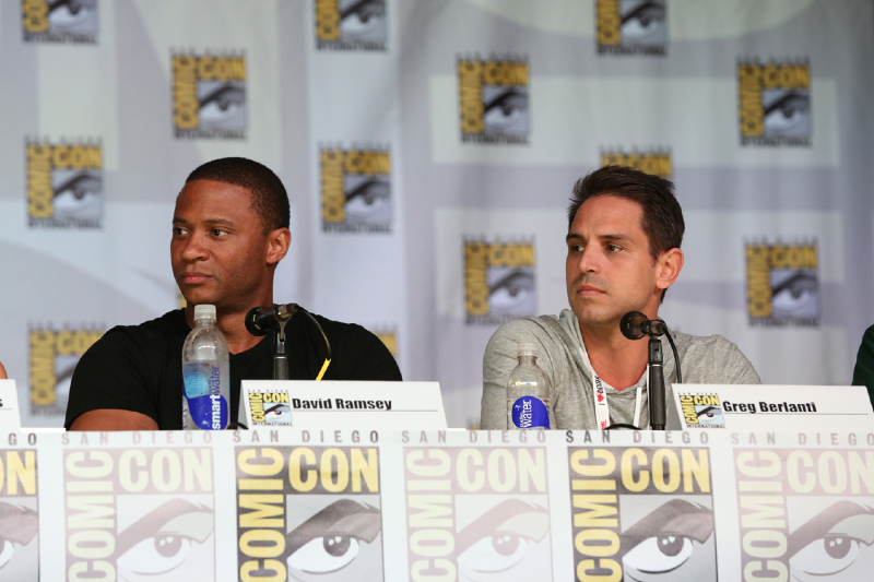 The cast and producers of Arrow, with special guest star John Barrowman, participated in a panel at this year’s Comic-Con International in San Diego, and then many of them showed up for an autograph signing at the Warner Bros. booth on the convention floor.
