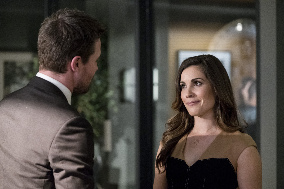 Arrow -- "Bratva" -- Image AR512a_0053b.jpg -- Pictured (L-R): Stephen Amell as Oliver Queen and Carly Pope as Susan Williams -- Photo: Cate Cameron/The CW -- © 2017 The CW Network, LLC. All Rights Reserved.