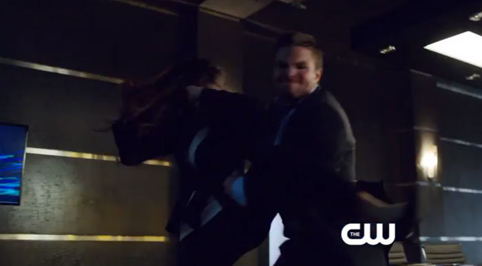 Who is Oliver fighting in the office? We’re still not completely sure. But still, these are some cool shots, especially the images that include the terminator known as Deathstroke. (Somewhere lurking in the episode is also the terminator known as Cameron, aka Summer Glau. RIP The Sarah Connor Chronicles.)