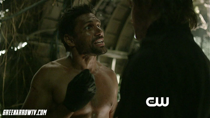 The clip features Stephen Amell as a not quite as fit Oliver and Manu Bennett as Slade Wilson, pulling shirtless duty since Oliver wasn’t quite so built back in the time of the island.