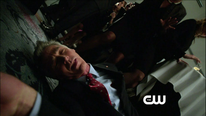 The return episode is called “Home Invasion,” and guest stars include Michael Rowe as Deadshot/Floyd Lawton and J. August Richards of Angel fame as a character we don’t know about yet. They both show up in the screen captures, as does a shirtless Oliver (Stephen Amell). Colton Haynes is also back as Roy Harper!