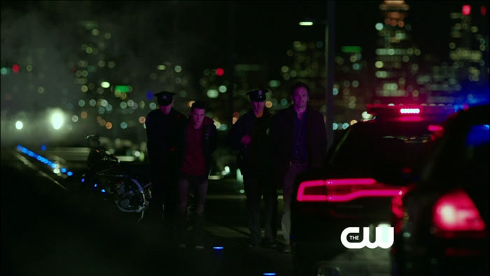 The return episode is called “Home Invasion,” and guest stars include Michael Rowe as Deadshot/Floyd Lawton and J. August Richards of Angel fame as a character we don’t know about yet. They both show up in the screen captures, as does a shirtless Oliver (Stephen Amell). Colton Haynes is also back as Roy Harper!