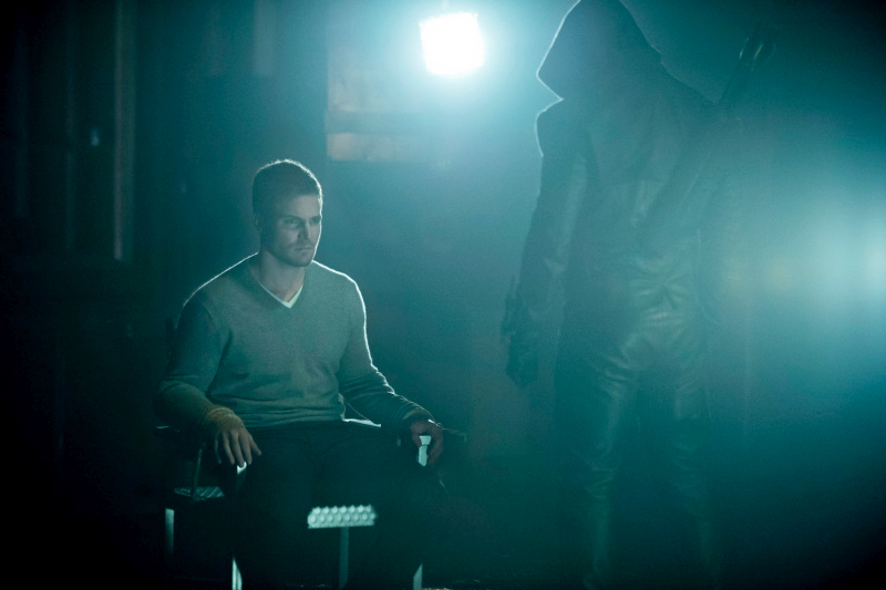 CAN OLIVER OUTWIT OR OUTFIGHT THE DARK ARCHER TO SAVE THE CITY? — With the Undertaking days away, Malcolm (guest star John Barrowman) dons his black hood to conclude business with seismologist Dr. Brion Markov (guest star Eric Floyd) and his team. Oliver (Stephen Amell) and Moira (Susanna Thompson) entertain a number of surprise – and mostly unwelcome – visitors.  Hooded confrontations at home and the Meryln Global Group reveal dark secrets.  Meanwhile, Roy (guest star Colton Haynes) and Thea (Willa Holland) are still looking out for a hero.  Laurel (Katie Cassidy) makes a decision after Tommy’s (Colin Donnell) revelation.  In a flashback to the island, Oliver, Slade (guest star Manu Bennett) and Shado (guest star Celina Jade) struggle to prevent Fyers (guest star Sebastian Dunn) from shooting a Ferris Air jet out of the sky.  Paul Blackthorne and David Ramsey also star.  Roger Cross and Bryon Mann also guest star.  John Behring directed the episode written by Drew Z. Greenberg & Wendy Mericle (#122).