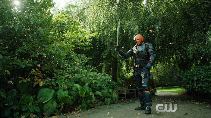 s020b-n30-arw-110-15You can find all kinds of coverage related to Arrow 100 here at GreenArrowTV… including interviews, preview photos, and a whole lot more. Below, see the trailer for tomorrow’s episode… but before that, we have screen captures, including a shot of Laurel holding a ring in the shower, some of John Diggle as the Hood, Deathstroke and other villains, and “reality” fading away! Our thanks to Mr. Video for the screencaps which we had ready for you all right here and now. (Do note that the trailer we have caps for appears slightly different in order than the trailer itself). Enjoy: