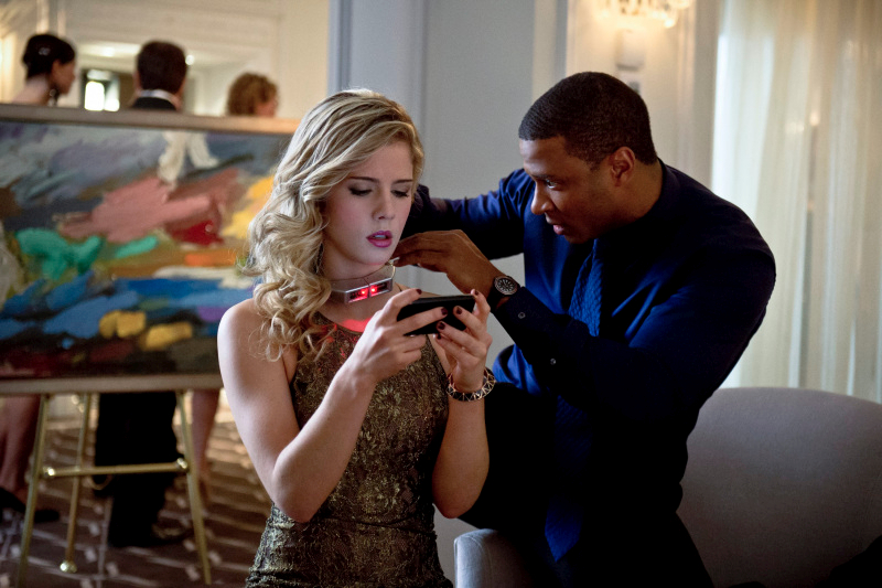 Arrow -- "Dodger" -- Image AR115a_0005b -- Pictured (L-R): Emily Bett Rickards as Felicity Smoak and David Ramsey as John Diggle -- Photo: Cate Cameron/The CW -- © 2013 The CW Network. All Rights Reserved
