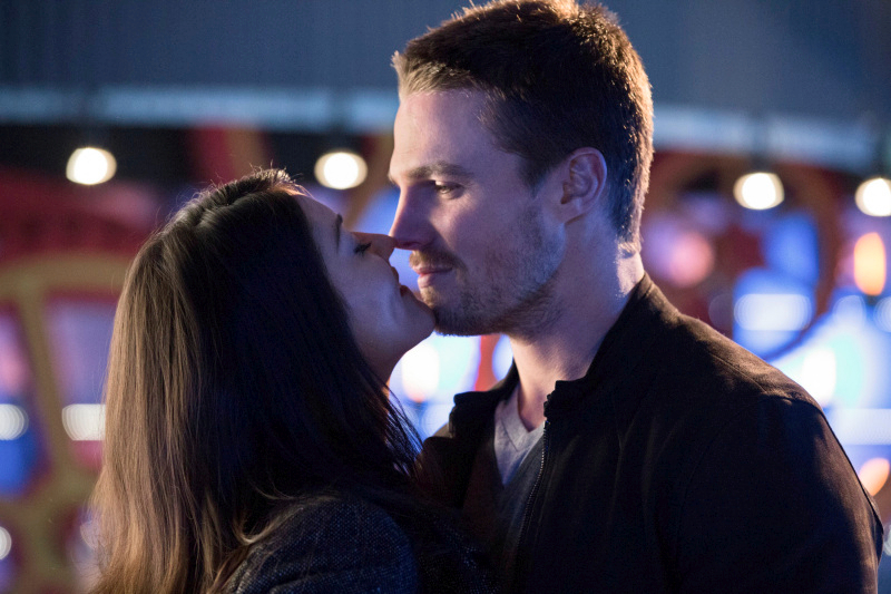 Arrow -- "The Huntress Returns" -- Image AR117a_0354b -- Pictured (L-R): Janina Gavankar as McKenna and Stephen Amell as Oliver Queen -- Photo: Jack Rowand/The CW -- © 2013 The CW Network. All Rights Reserved