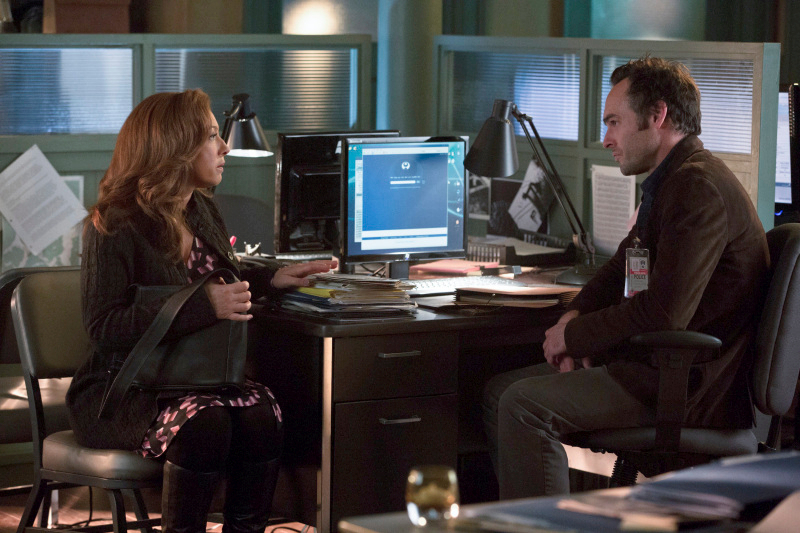 Arrow -- "The Huntress Returns" -- Image AR117b_0525b – Pictured (L-R): Alex Kingston as Dinah Lance and Paul Blackthorne as Detective Lance -- Photo: Jack Rowand/The CW -- © 2013 The CW Network. All Rights Reserved