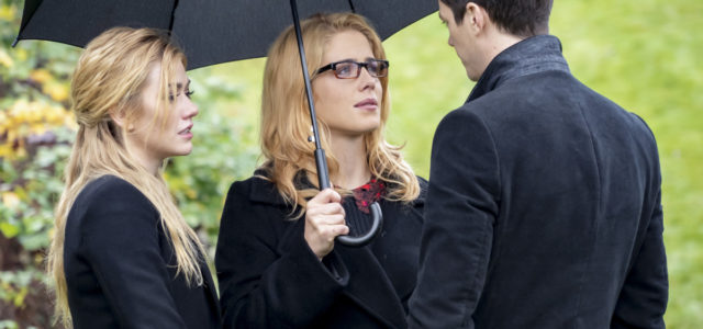 A highlight of tonight’s Arrow finale on The CW is seeing how the returned Felicity (Emily Bett Rickards) might respond to meeting the grown-up version of her daughter Mia (Katherine McNamara), and without revealing too much — she has been known to be the “spoiler police,” after all — Executive Producer Beth Schwartz did talk about their interaction a little bit at a Q&A hosted yesterday by The CW.