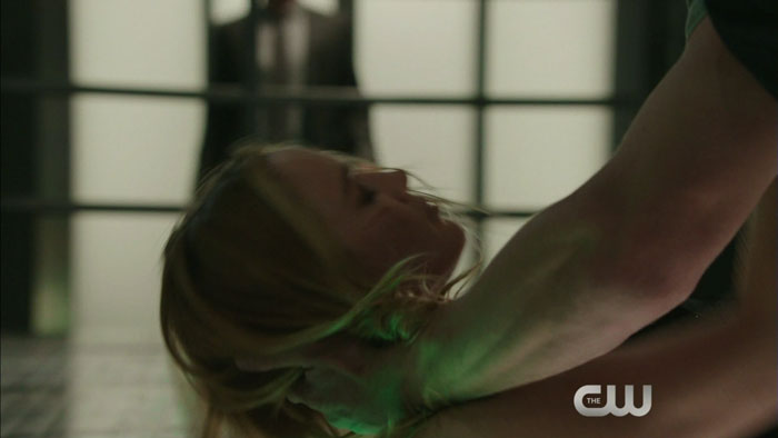 It doesn’t appear that the clip itself has made its way online, but thanks to Mr. Video, we have screen captures from a webclip promoting this Wednesday’s new episode of Arrow, which is titled “Haunted.”