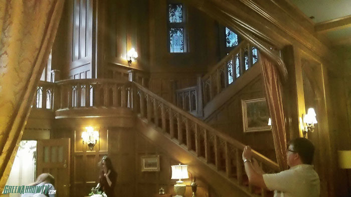 When a pilot episode is done, most of the sets are actual locations; when a show goes to series, it would be too costly to go on location all the time – though it does still happen – so several standing sets are created for the show. In the case of Arrow, we’ve got places like Walter Steele’s office, the warehouse with the famous salmon ladder… and the Queen mansion, which almost perfectly replicates the Hatley Castle in Victoria.
