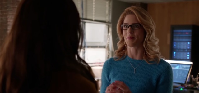 The episode is called “Inheritance” and the clip features the beginnings of Felicity’s Smoak Technologies — for which she recruits a CTO, Alena (guest star Kacey Rohl), whose last name is revealed to be Whitlock!