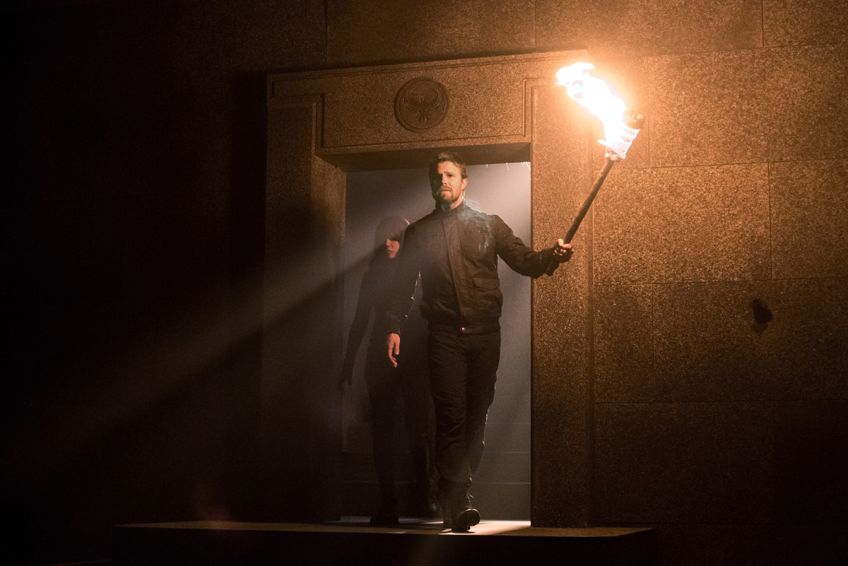 WILLA HOLLAND GUEST STARS — Reunited with his sister, Oliver (Stephen Amell) and Thea (guest star Willa Holland) find themselves searching through a familiar maze of catacombs. Meanwhile, John (David Ramsey) and Lyla (guest star Audrey Marie Anderson) partner on a special ops mission. Katie Cassidy directed the episode written by Emilio Ortega Aldrich & Elizabeth Kim (#803). Original airdate 10/29/2019.