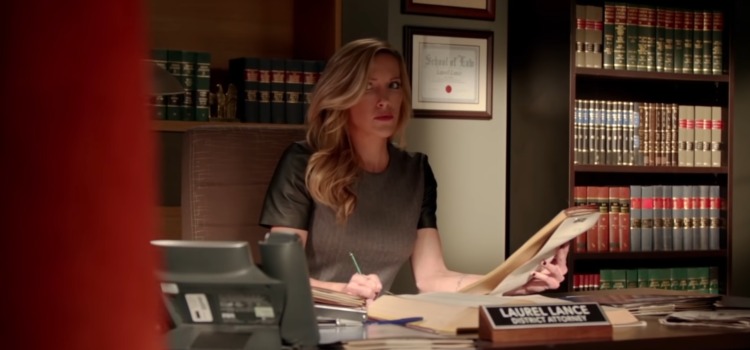 The clip makes mention of this Laurel not really being a lawyer, and that she is “doing this for Quentin,” and is a really good scene between the actors, as we see Felicity offering justice against one of Diaz’s “Longbow Hunters” to catch Laurel’s attention.