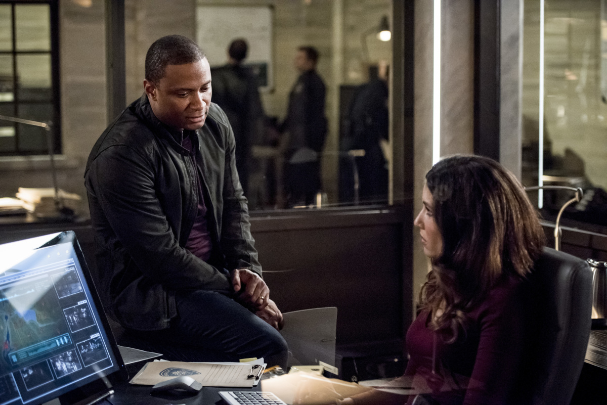 Arrow -- "Level Two" -- Image Number: AR704a_0290b -- Pictured (L-R): David Ramsey as John Diggle and Juliana Harkavy as Dinah Drake/Black Canary -- Photo: Dean Buscher/The CW -- © 2018 The CW Network, LLC. All Rights Reserved.