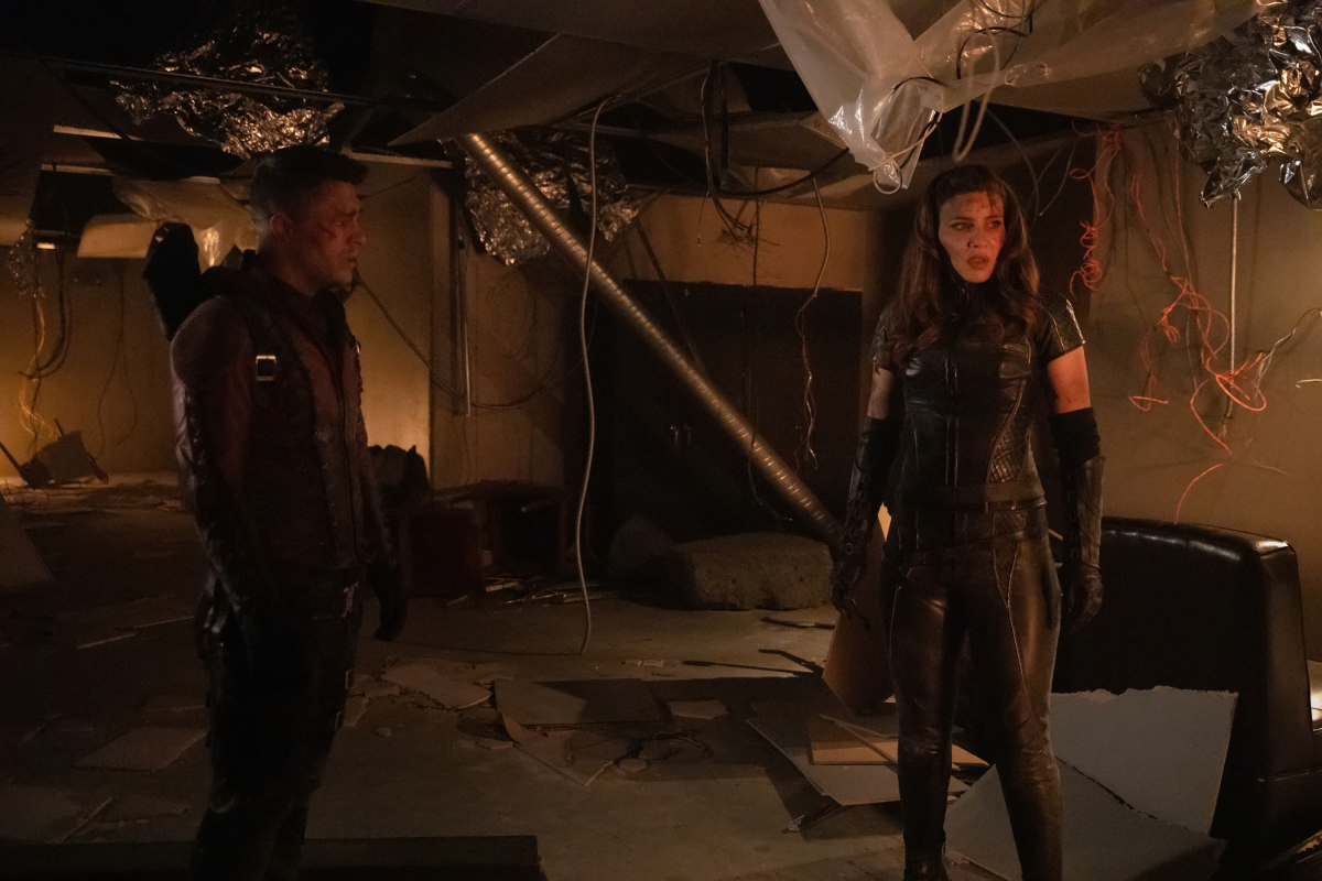 Arrow -- "Living Proof" -- Image Number: AR721a_0389r.jpg -- Pictured (L-R): Colton Haynes as Roy Harper and Juliana Harkavy as Dinah Drake/Black Canary -- Photo: Jack Rowand/The CW -- © 2019 The CW Network, LLC. All Rights Reserved.