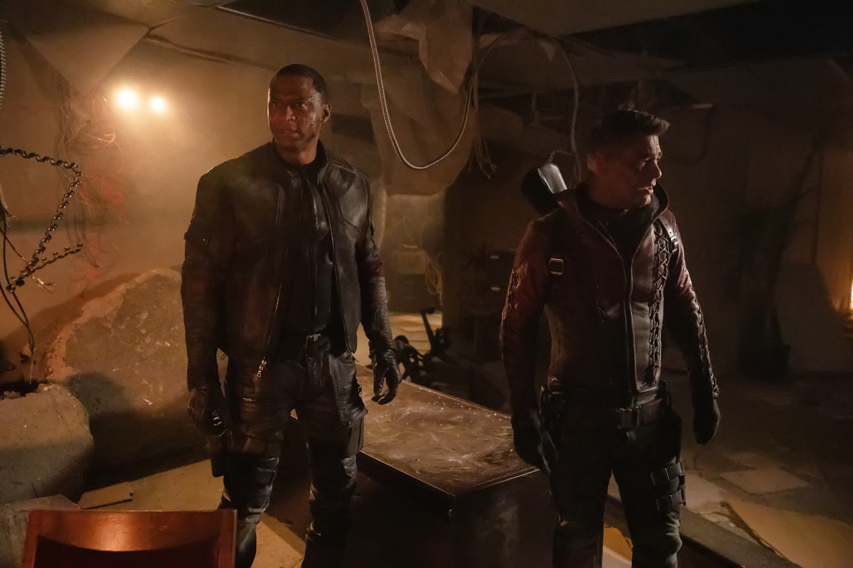Arrow -- "Living Proof" -- Image Number: AR721a_0480r.jpg -- Pictured (L-R): David Ramsey as John Diggle/Spartan and Colton Haynes as Roy Harper -- Photo: Jack Rowand/The CW -- © 2019 The CW Network, LLC. All Rights Reserved.