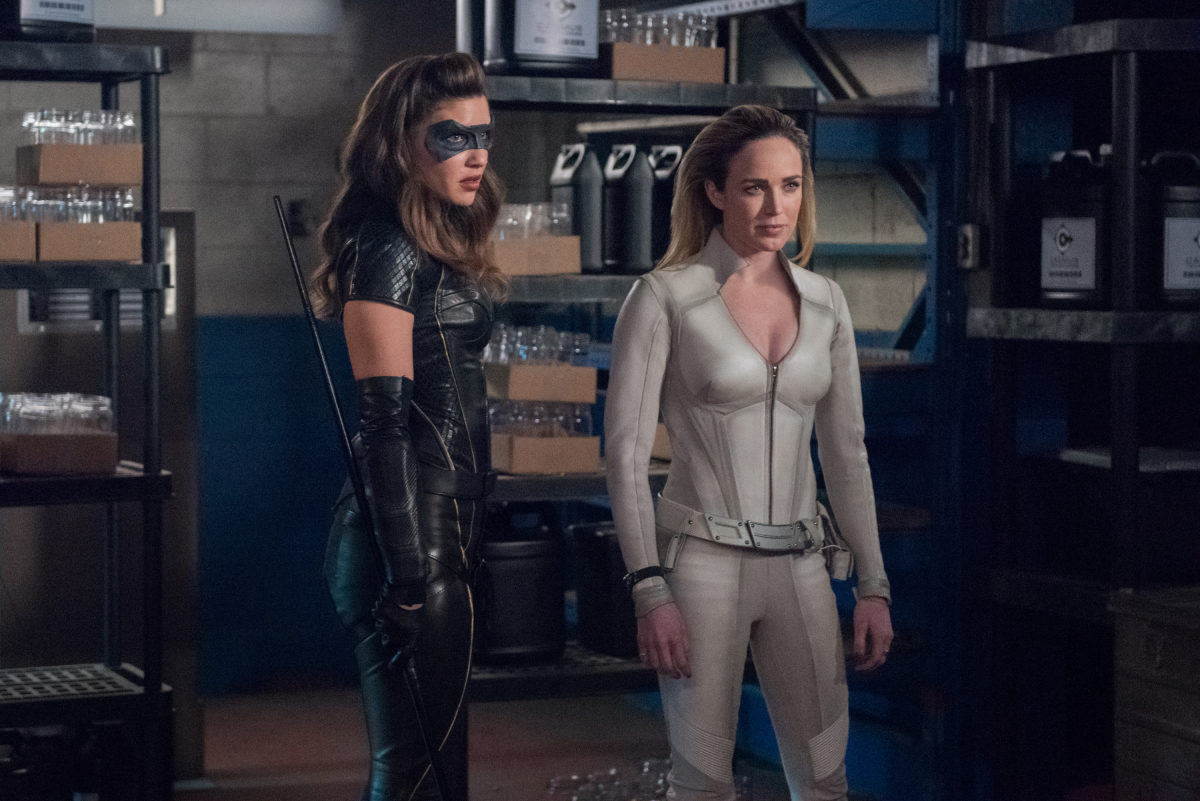 Arrow -- "Lost Canary" -- Image Number: AR718B_0055r.jpg -- Pictured (L-R): Juliana Harkavy as Dinah Drake/Black Canary and Caity Lotz as Sara Lance/White Canary -- Photo: Dean Buscher/The CW -- © 2019 The CW Network, LLC. All Rights Reserved.