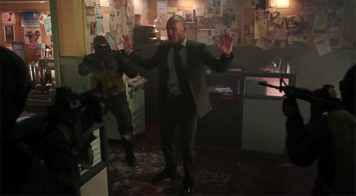 So, the Arrow Season 4 trailer is a thing and it was awesome. And now, for those of you who would like to see still frames, we have nearly 200 screen captures for you from the promo, so you can get better looks at such things as – spoiler warning! –  Damien Dahrk, John Constantine, Sara’s resurrection, Speedy, the Green Arrow costume, Diggle’s new look, Mr. Teriffic’s magic flying balls, and much more. Even Amanda Waller shows up! Guest stars like JR Bourne, Echo Kellum and Jeri Ryan also show up in the promo. We see the Kord Industries logos are showing up again – but still no Ted Kord.