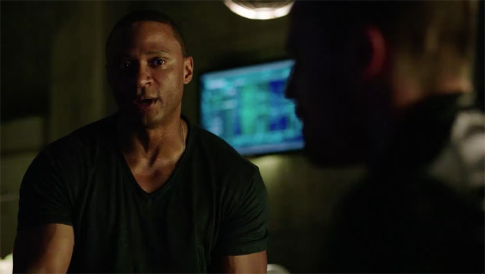 So, the Arrow Season 4 trailer is a thing and it was awesome. And now, for those of you who would like to see still frames, we have nearly 200 screen captures for you from the promo, so you can get better looks at such things as – spoiler warning! –  Damien Dahrk, John Constantine, Sara’s resurrection, Speedy, the Green Arrow costume, Diggle’s new look, Mr. Teriffic’s magic flying balls, and much more. Even Amanda Waller shows up! Guest stars like JR Bourne, Echo Kellum and Jeri Ryan also show up in the promo. We see the Kord Industries logos are showing up again – but still no Ted Kord.