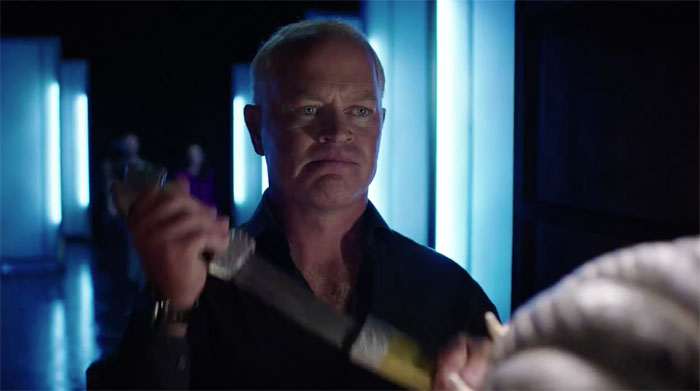 So, the Arrow Season 4 trailer is a thing and it was awesome. And now, for those of you who would like to see still frames, we have nearly 200 screen captures for you from the promo, so you can get better looks at such things as – spoiler warning! –  Damien Dahrk, John Constantine, Sara’s resurrection, Speedy, the Green Arrow costume, Diggle’s new look, Mr. Teriffic’s magic flying balls, and much more. Even Amanda Waller shows up! Guest stars like JR Bourne, Echo Kellum and Jeri Ryan also show up in the promo. We see the Kord Industries logos are showing up again – but still no Ted Kord.