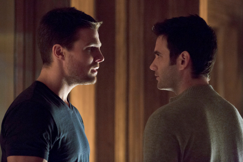 Arrow -- "Home Invasion" -- Image AR120a_9871b -- Pictured (L-R): Stephen Amell as Oliver Queen and Colin Donnell as Tommy Merlyn -- Photo: Jack Rowand/The CW -- © 2013 The CW Network. All Rights Reserved