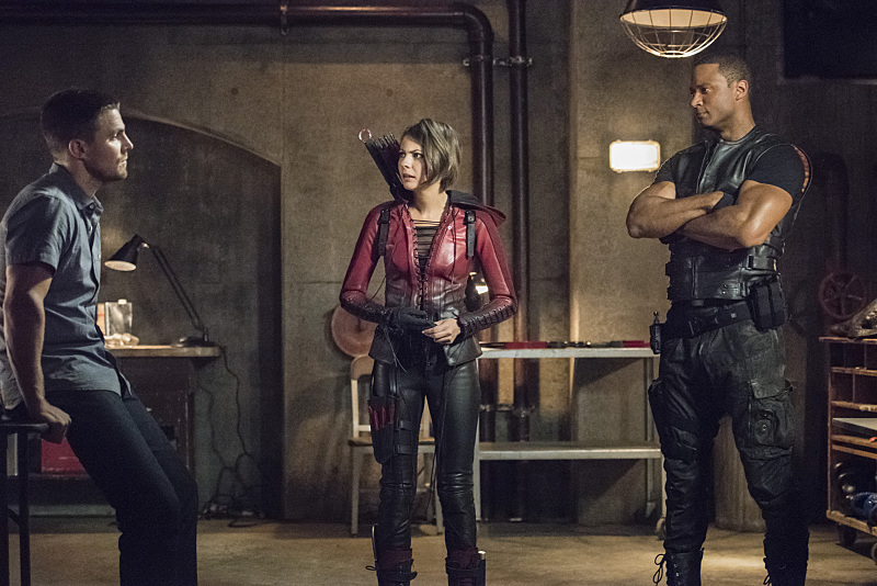 Arrow -- "Green Arrow" -- Image AR401A_0099b -- Pictured (L-R): Stephen Amell as Oliver Queen, Willa Holland as Thea Queen and David Ramsey as John Diggle -- Photo: Dean Buscher /The CW -- © 2015 The CW Network, LLC. All Rights Reserved.
