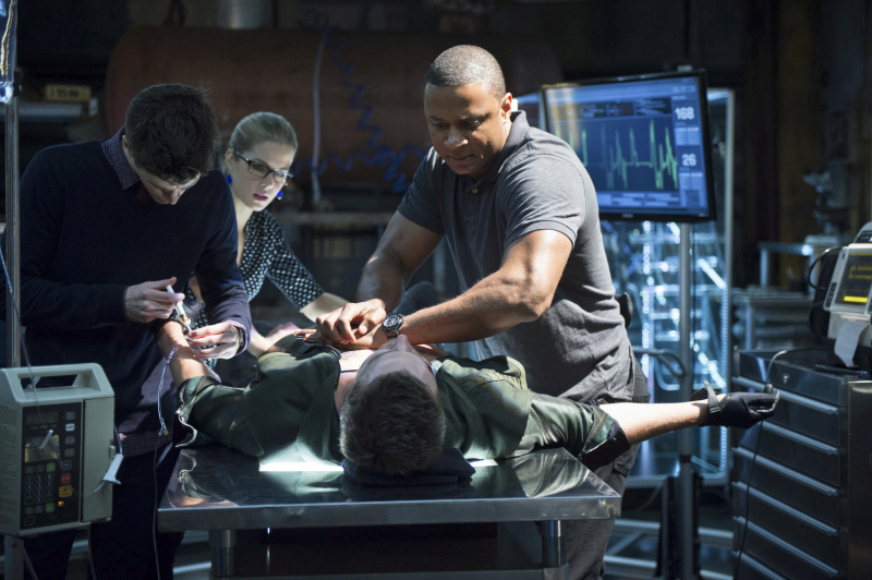 OLIVER IS VISITED BY GHOSTS FROM THE PAST — After a fight with Cyrus Gold AKA the Acolyte (guest star Graham Shiels), Oliver (Stephen Amell) is drugged and left for dead. Determined to cure him, Felicity (Emily Bett Rickards) makes a risky decision. The cure causes Oliver to hallucinate, and what he sees forces him to confront his past. Meanwhile, Barry (guest star Grant Gustin) continues to help Felicity, and their connection grows stronger. The Arrow asks Lance (Paul Blackthorne) to look into Gold, but when the stakeout on Gold goes bad, someone is killed. Roy (Colton Haynes) is captured and tortured by Brother Blood (guest star Kevin Alejandro). John Behring directed the episode with story by Greg Berlanti & Andrew Kresiberg and teleplay by Geoff Johns & Ben Sokolowski (#209).