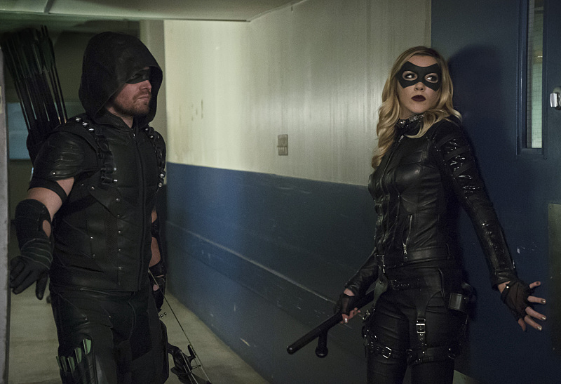 Arrow -- "Code of Silence" -- Image AR414A_0057b.jpg -- Pictured (L-R): Stephen Amell as The Arrow and Katie Cassidy as Laurel Lance/Black Canary -- Photo: Katie Yu/ The CW -- © 2016 The CW Network, LLC. All Rights Reserved.