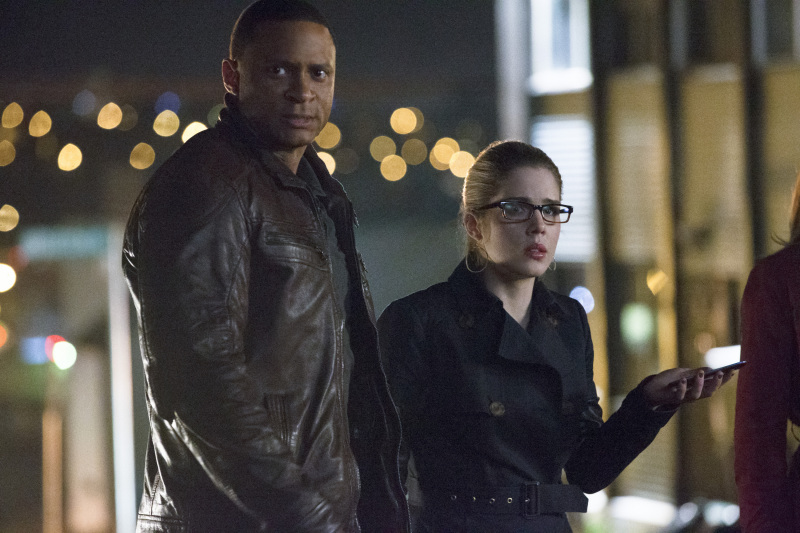 Arrow -- "Streets of Fire" -- Image AR222a_3692b -- Pictured (L-R): David Ramsey as John Diggle and Emily Bett Rickards as Felicity Smoak -- Photo: Jack Rowand /The CW -- © 2014 The CW Network, LLC. All Rights Reserved.