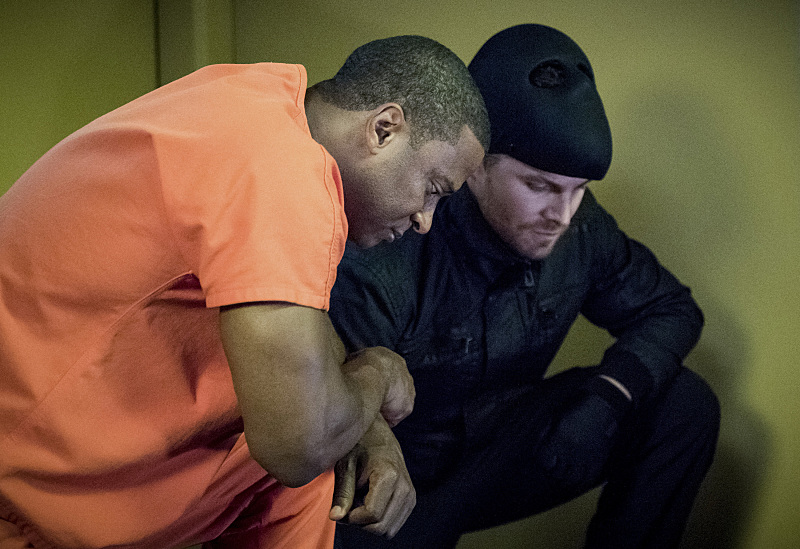 Arrow -- "Penance" -- Image AR504b_0002b.jpg -- Pictured (L-R): David Ramsey as John Diggle and Stephen Amell as Oliver Queen -- Photo: Dean Buscher/The CW -- © 2016 The CW Network, LLC. All Rights Reserved.