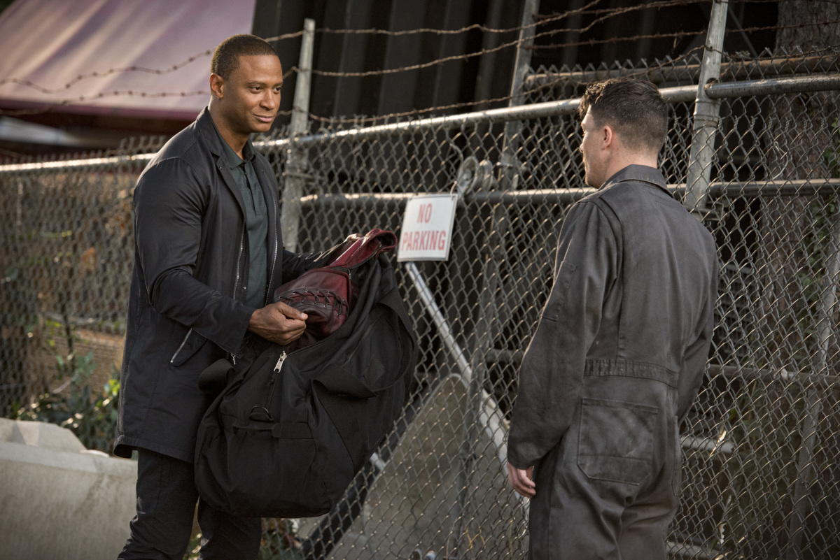 Arrow -- "Prochnost" -- Image Number: AR805B_0261b.jpg -- Pictured (L-R): David Ramsey as John Diggle/Spartan and Colton Haynes as Roy Harper -- Photo: Dean Buscher/The CW -- © 2019 The CW Network, LLC. All Rights Reserved.